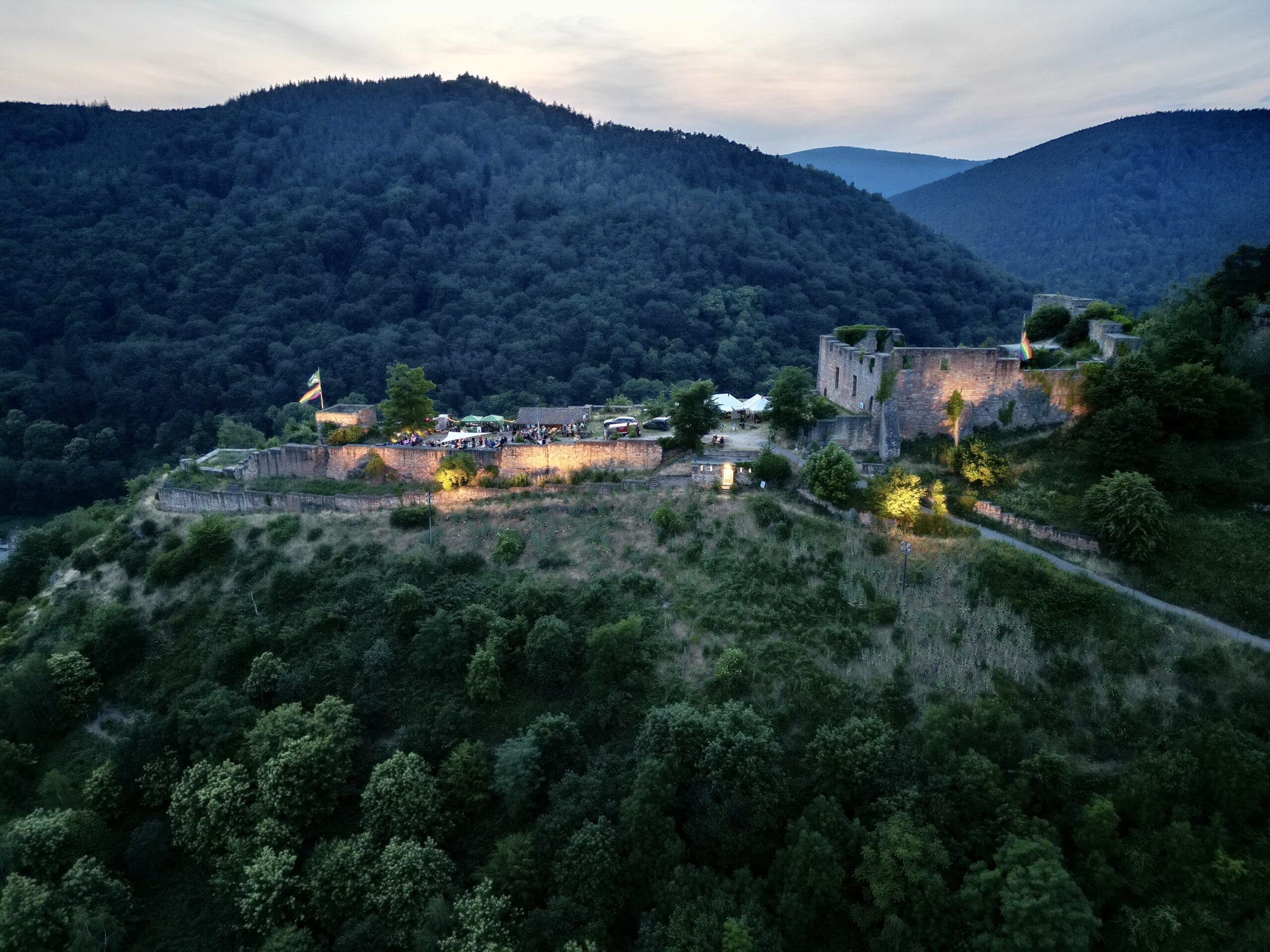 Die Zufahrt zur Burgruine ist leider nicht möglich. Nutzen Sie stattdessen die Buslinien 515 und 517 bis ins Schöntal, oder den Mobility on Demand-Service zur Waldschenke Ludwigsbrunnen. Bitte beachten Sie, dass der Rückweg nicht beleuchtet ist. Festes Schuhwerk und eine Taschenlampe werden empfohlen.